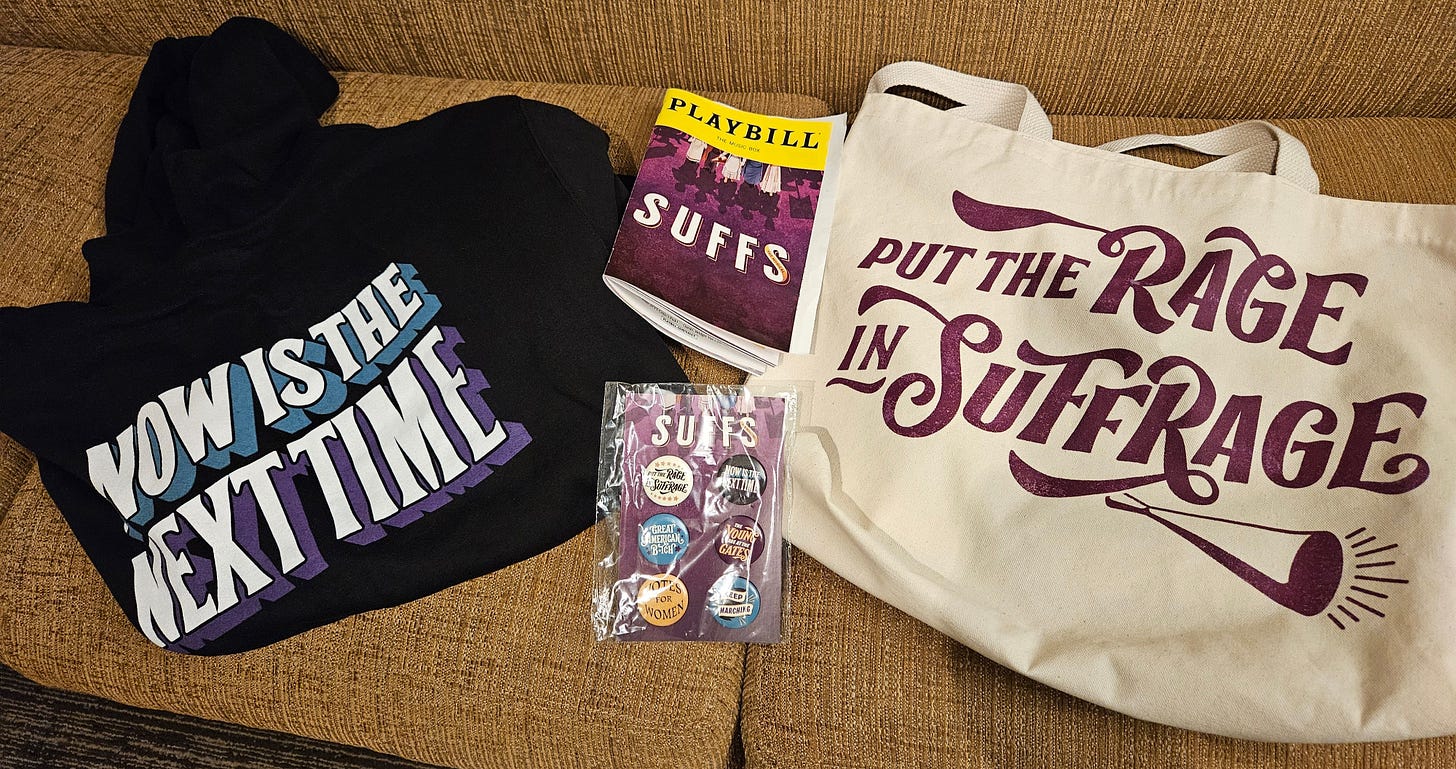 I sat next to a woman who was very lively, often snapping and waving her fist in agreement with the characters. What surprised me was her visible shock when Milholland died and later when the suffragists were arrested. She was clearly unfamiliar with the story. It’s unfortunate that this history isn’t widely known.