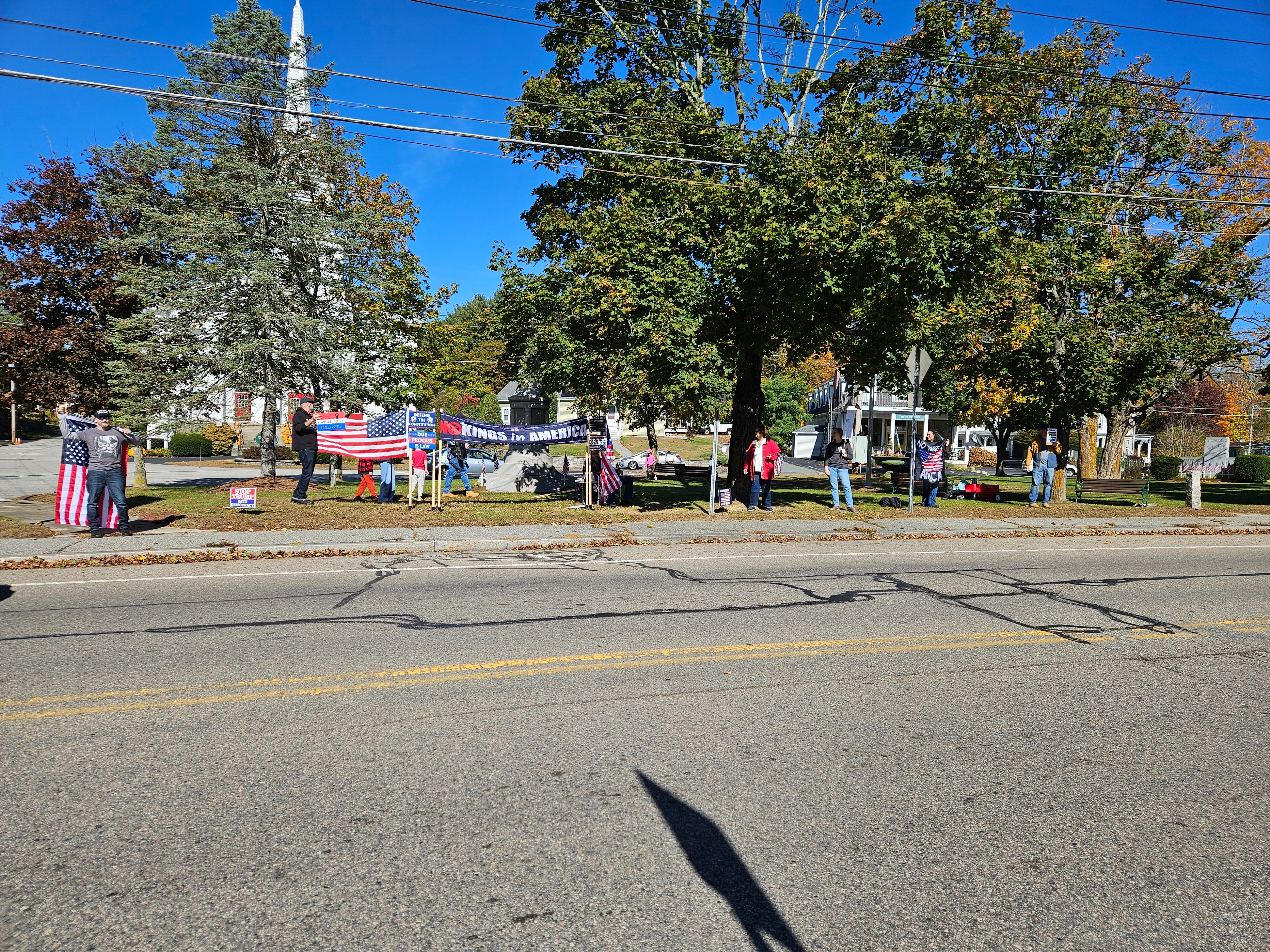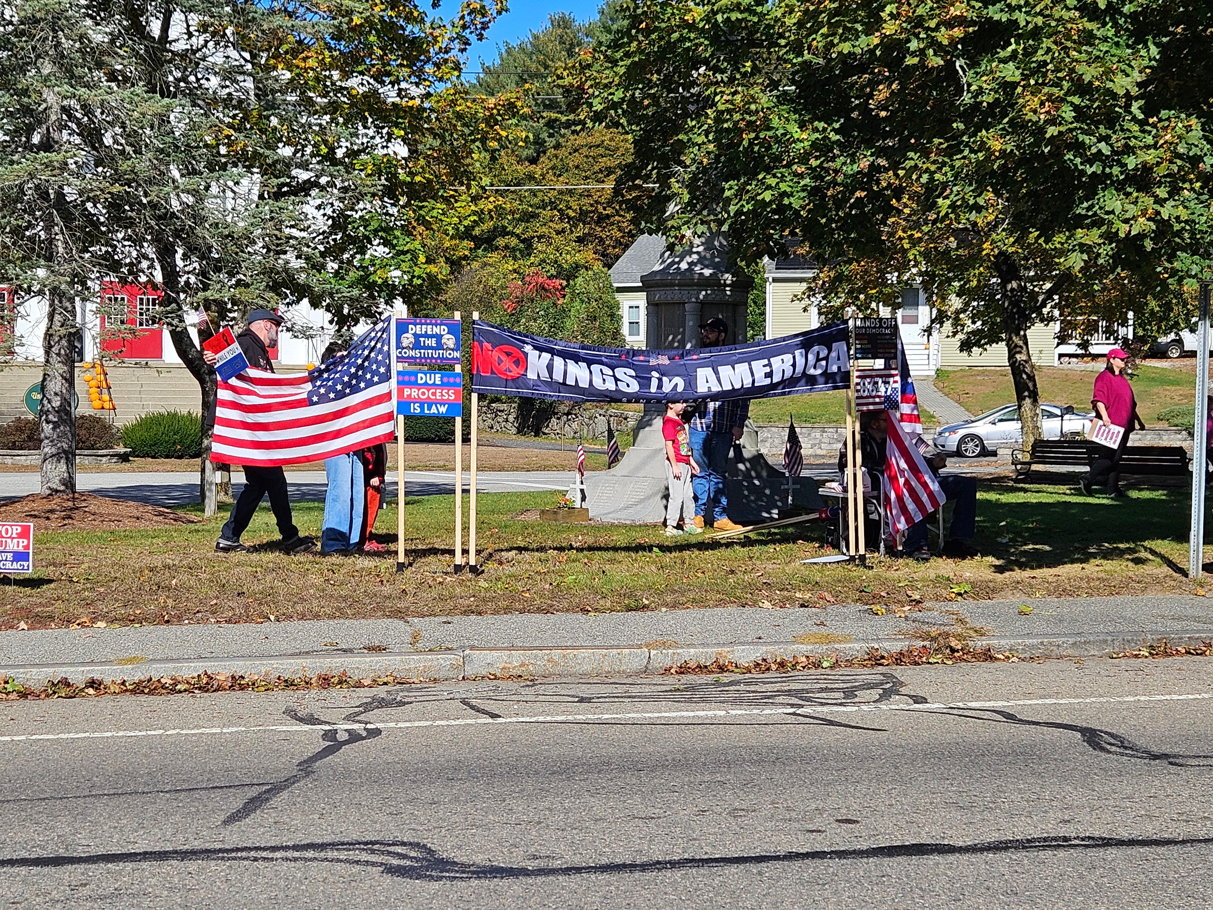 I was going to attend the No Kings rally in Milford, but I couldn’t find it. I had past the one in Upton so I joined it. This is the first protest I’ve seen in Upton, it’s a very small town. I was wearing my costume for the Haunt and danced with flag poi. Here’s two pictures I took: