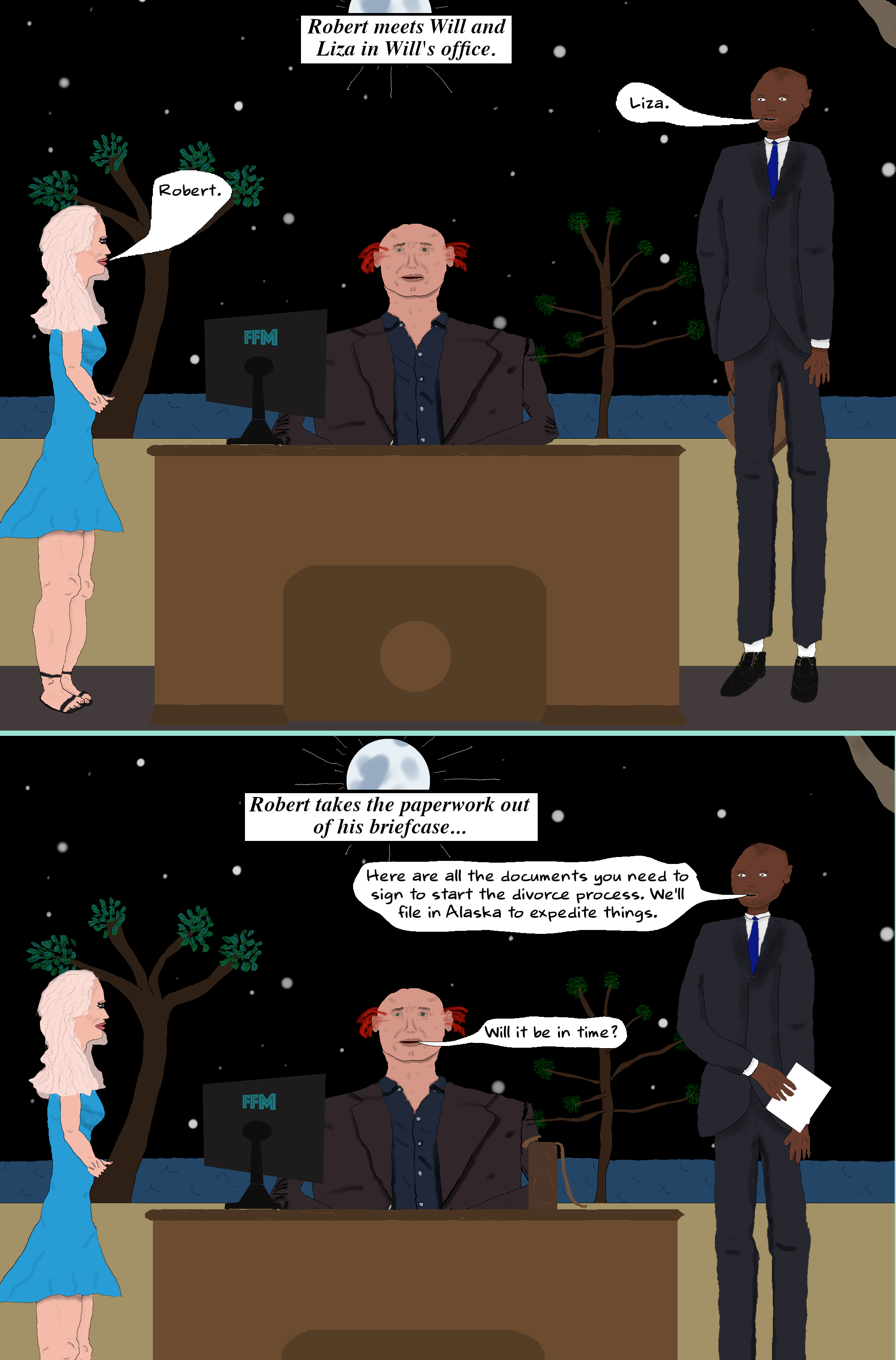 Yikes, that was a lot of work to draw Robert and a whole new scene. I think it was worth it though! I tried drawing Robert at a 3/4ths perspective and it could have gone better!
